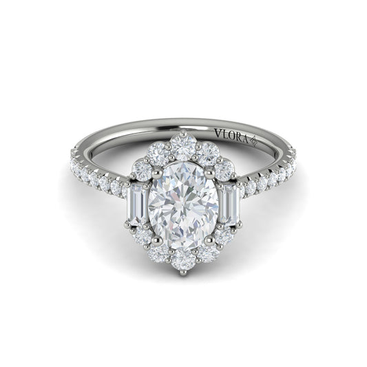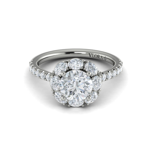 14K White Gold Oval Halo Round Diamond Engagement Ring