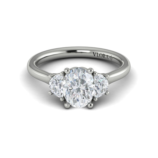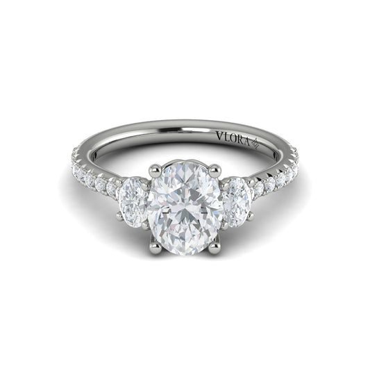 14K White Gold Oval Three-Stone Diamond Engagement Ring