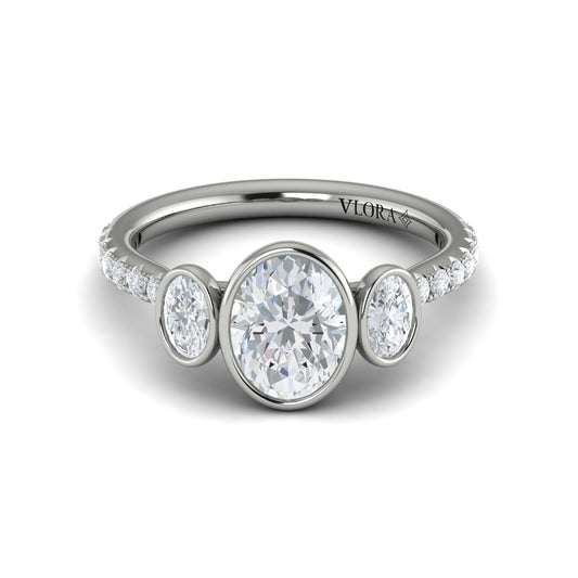 14K White Gold Oval Diamond Three-Stone Bezel Ring
