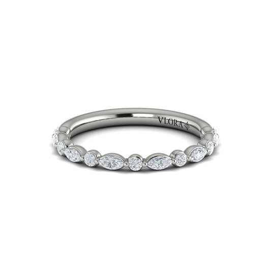 14K White Gold Mosaic Diamond Womens Wedding Band