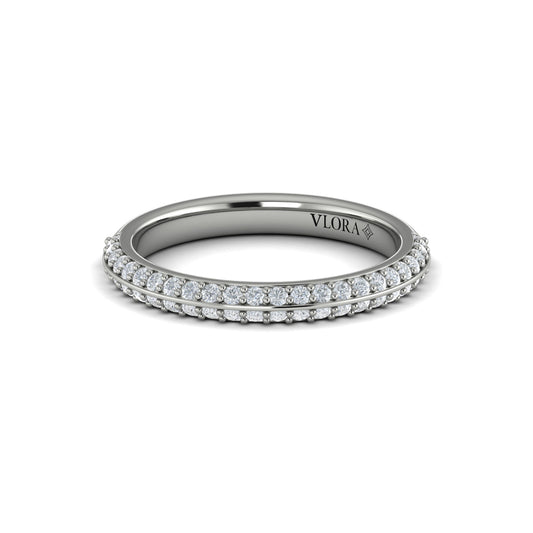 14K White Gold Pave Diamond Womens Matching Wedding Band