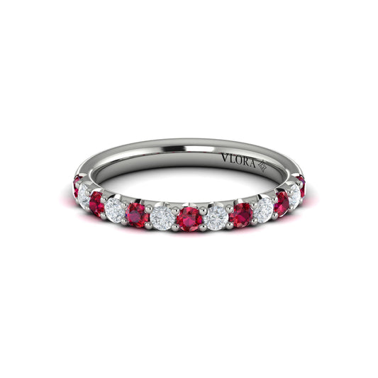14K White Gold Ruby Elegant Womens Wedding Band