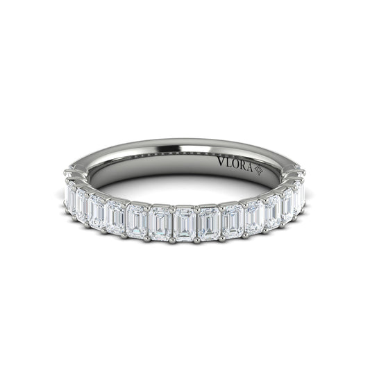 14K White Gold Emerald Cut Diamond Womens Wedding Band