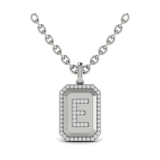 Diamond Medallion Alphabet Pendant Link Necklace, E