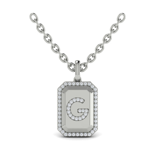 Diamond Medallion Alphabet Pendant Link Necklace, G
