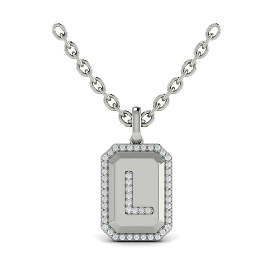 Diamond Medallion Alphabet Pendant Link Necklace, L