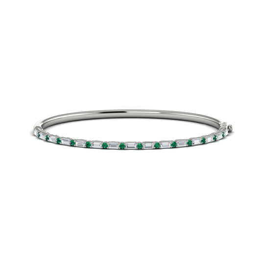 Diamond Baguette and Emerald Hinged Bangle