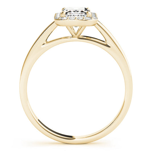 14K Yellow Gold Emerald Cut Diamond Halo Engagement Ring With Pave Accent Diamonds