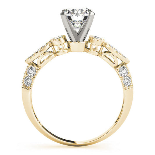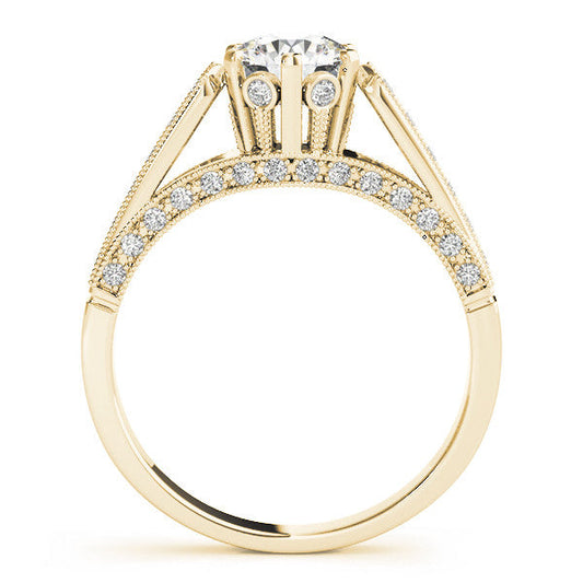 14K Yellow Gold Round Brilliant Diamond Beaded Mult-Cut Antique Inspired Engagement Ring With Pave Accents (1.13ctw)