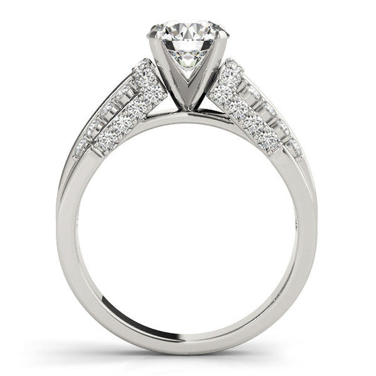 14K White Gold Round Brilliant Diamond Engagement Ring With Micro Pave Accents