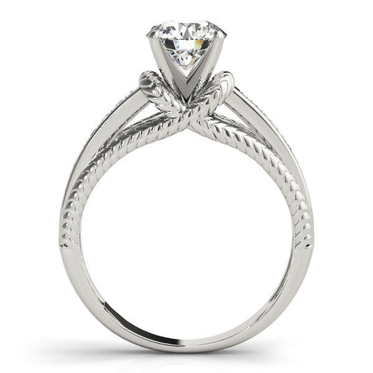 14K White Gold Round Brilliant Diamond Antique Inspired Twist Engagement Ring With Pave Accents