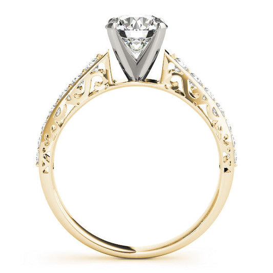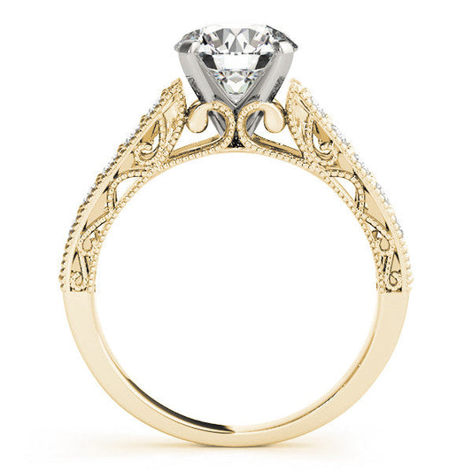 14K Yellow Gold Round Brilliant Diamond Antique Engagement Ring With Pave Accents (1.50ctw)