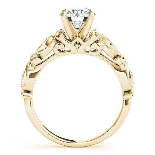 14K Yellow Gold Round Brilliant Diamond Antique Scallop Engagement Ring (1.17ctw)