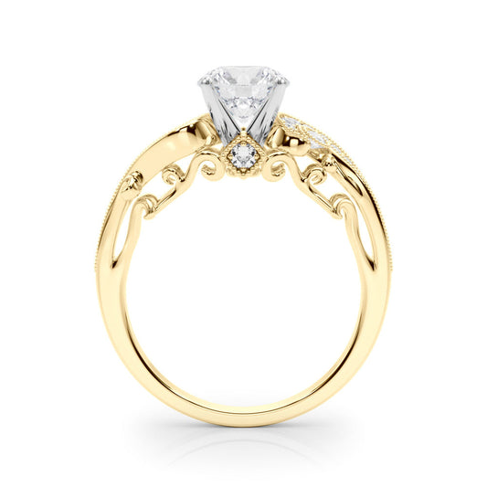 14K Yellow Gold Round Brilliant Diamond Antique Scallop Engagement Ring With Pave Accents (1.05ctw)
