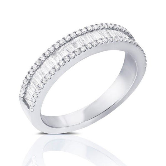 14K White Gold Baguette and Round Diamond Ring (.60ctw)