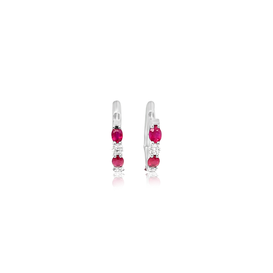 18K White Gold Ruby & Diamond Hoop Earrings (1.13ctw)