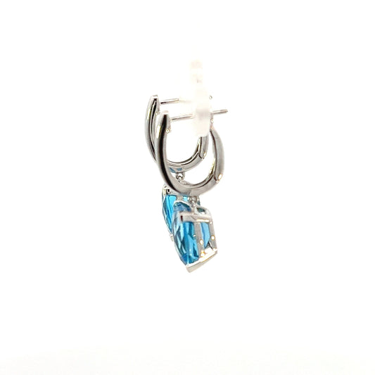 14K White Gold Cushion Cut Blue Topaz Drop Earrings (7.55ctw)