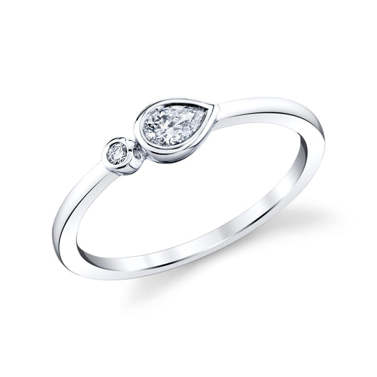 14K White Gold Pear and Round Diamond Bezel Stackable Ring (.17ctw)
