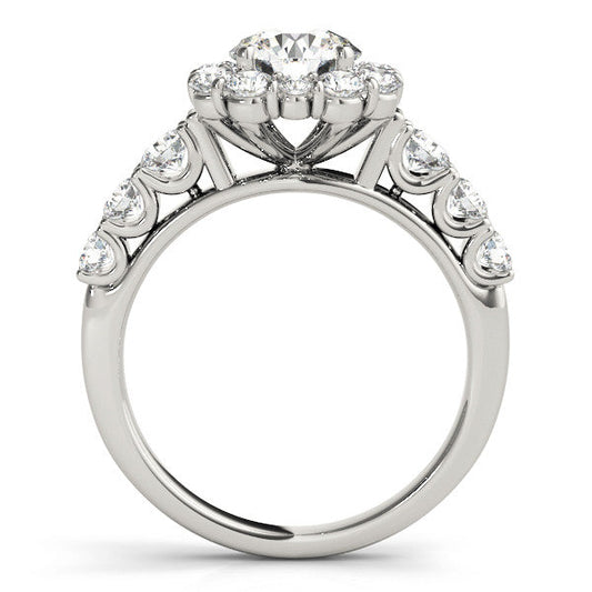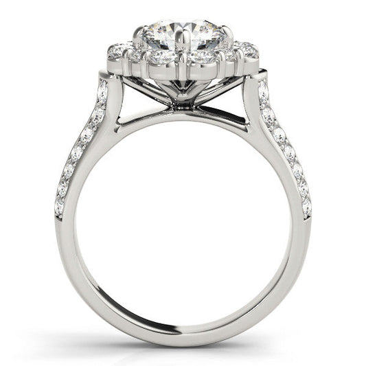 14K White Gold Round Brilliant Diamond Floral Halo Engagement Ring With Pave Accents (2ctw)