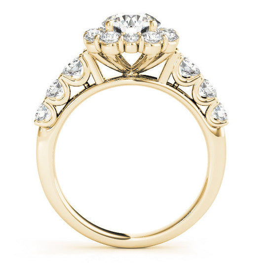 14K Yellow Gold Round Brilliant Diamond Floral Halo Engagement Ring With Pave Accents (2ctw)
