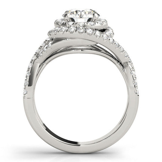 14K White Gold Round Brilliant Diamond Twisted Halo Engagement Ring With Pave Accents (1.63ctw)