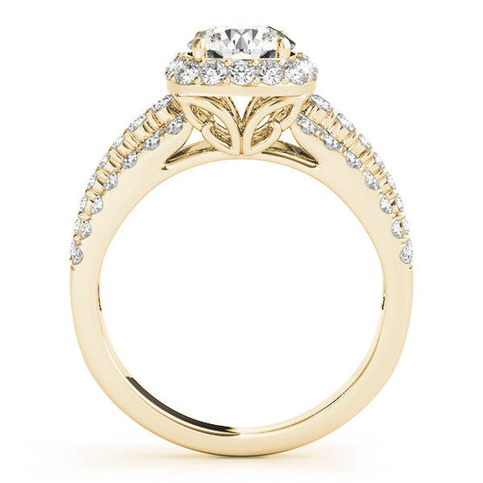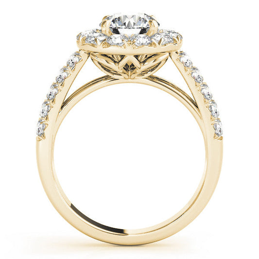 14K Yellow Gold Round Brilliant Diamond Halo Split Shank Engagement Ring With Pave Accents (1.88ctw)