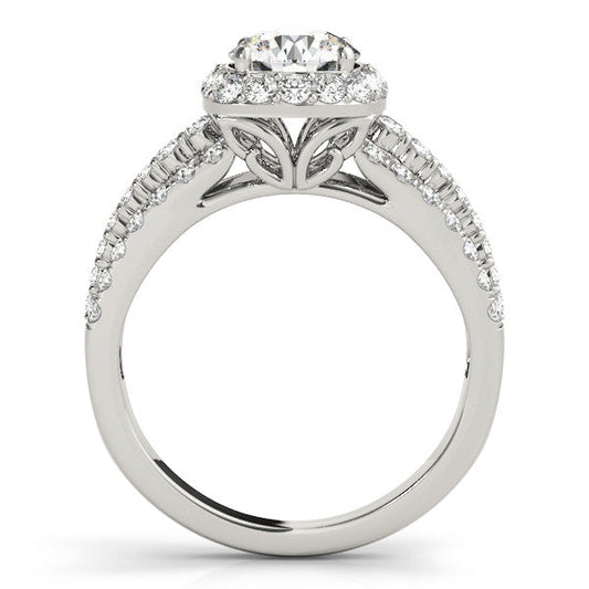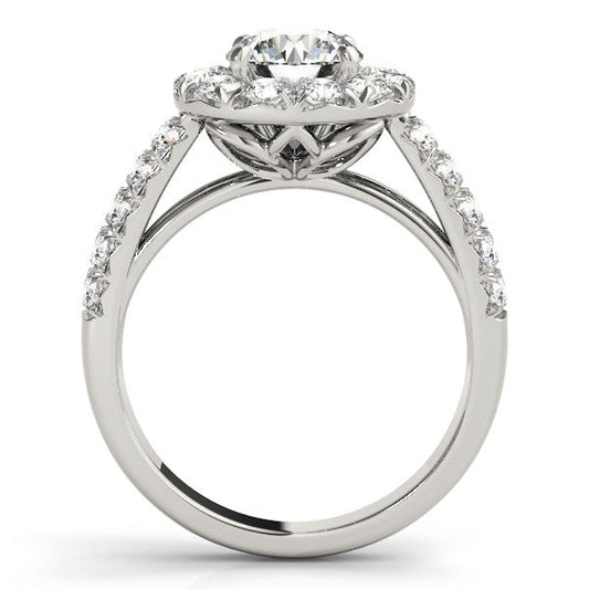 14K White Gold Round Brilliant Diamond Halo Split Shank Engagement Ring With Pave Accents (1.88ctw)