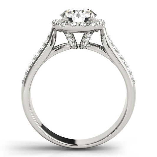 14K White Gold Round Brilliant Diamond Cushion Halo Engagement Ring With Pave Accents (2ctw)