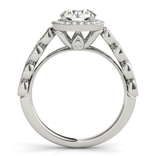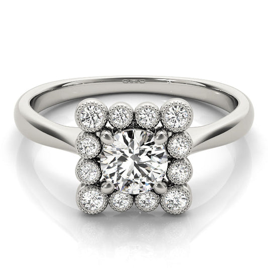14K White Gold Round Brilliant Diamond Engagement Ring With Beaded Bezel Set Square Halo (1.20ctw)