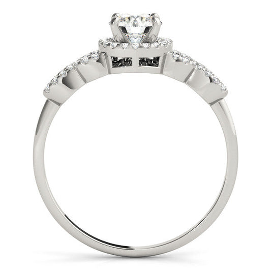 14K White Gold Round Brilliant Diamond With Cushion Halo Engagement Ring (1.15ctw)