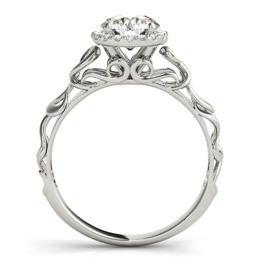 14K White Gold Round Brilliant Diamond Waved Shank Halo Engagement Ring (1.15ctw)