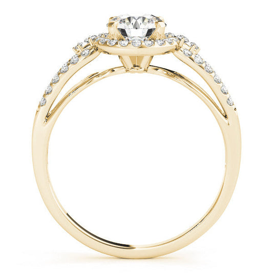 14K Yellow Gold Round Brilliant Diamond Halo Split Shank Engagement Ring With Pave Accents (1.25ctw)