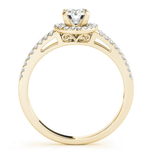 14K Yellow Gold Round Brilliant Diamond With Cushion Halo Engagement Ring (1.15ctw)