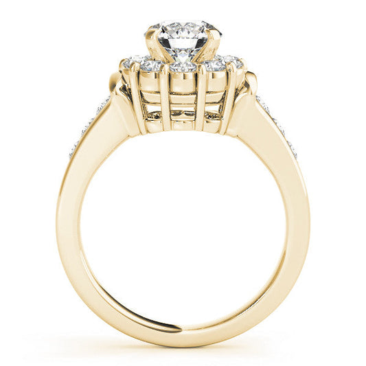 14K Yellow Gold Round Brilliant Diamond Halo Pave Accented Engagement Ring
