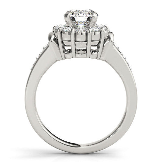 14K White Gold Round Brilliant Diamond Halo Engagement Ring With Pave Accented Infinity Sides