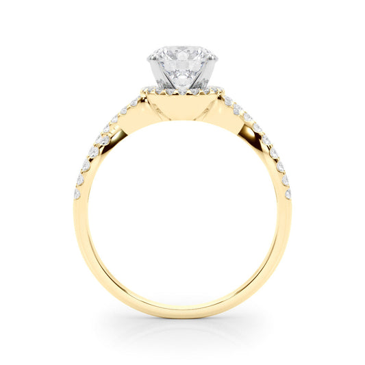 14K Yellow Gold Round Brilliant Diamond Halo Engagement Ring With Pave Accented Infinity Sides