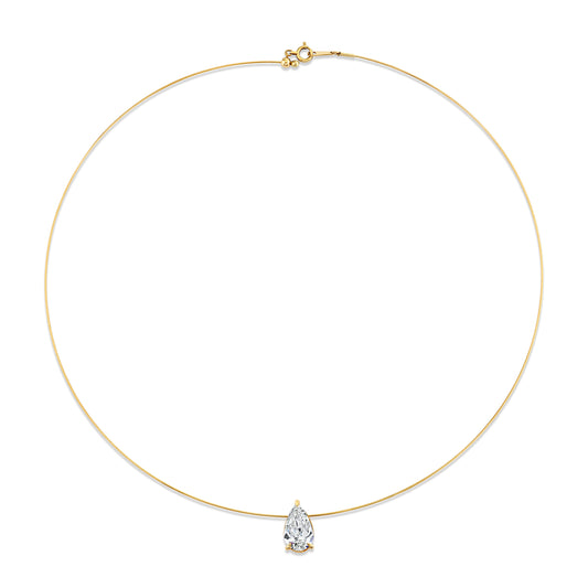 14K Yellow Gold Floating Pear Lab-Grown Diamond Necklace (3ct)