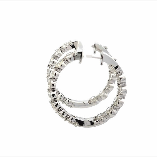 18K White Gold Shared Prong Inside Out Diamond Hoop Earrings (4ctw)