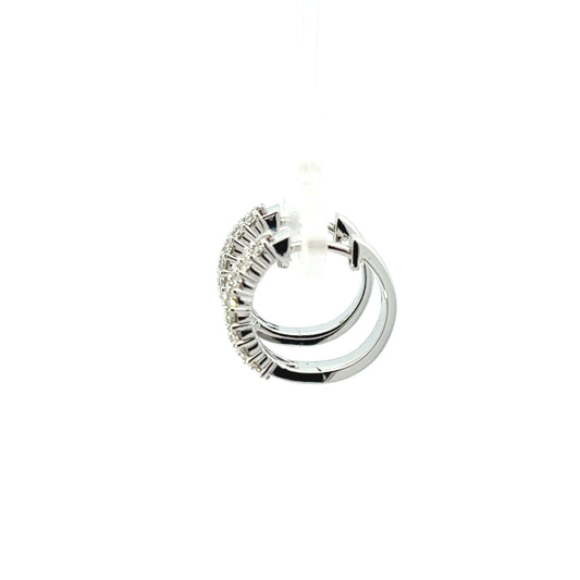 14K White Gold Three Row Pave Diamond Hoop Earrings (1ctw)