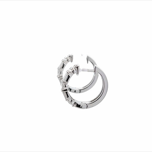 18K White Gold Baguette And Round Diamond Huggie Hoop Earrings (1.03ctw)