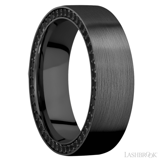 Men's 8MM Zirconium Wedding Ring with Satin Finish And Black Diamond Side Eternity Arrangement (.09ctw)