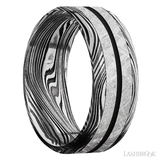 Damascus Steel Men's 8MM Wedding Ring With Meteorite Inlay