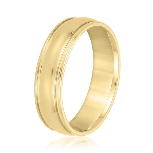 14K Yellow Gold Men's 6MM Wedding Band With Satin Finish And High Polish Beveled Edges