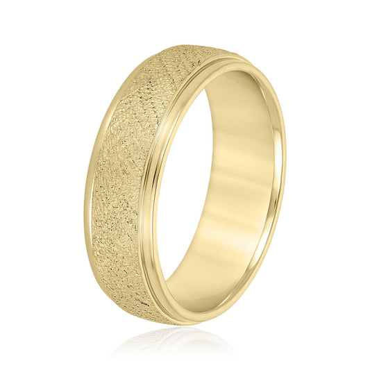 14K Yellow Gold Men's 6MM Beveled Wedding Ring With Sandblasted Finish