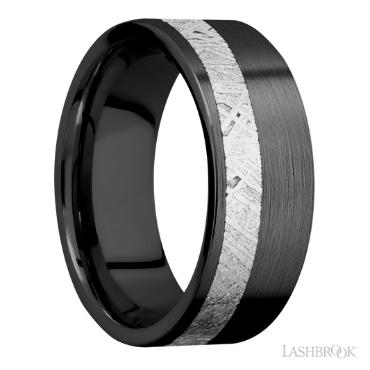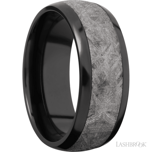 Zirconium Men's 8MM Wedding Ring with Polish Finish and Meteorite Inlay