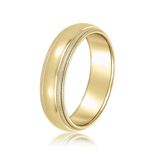 14K Yellow Gold Men's 6MM Domed Wedding Ring With Milgrain Edges