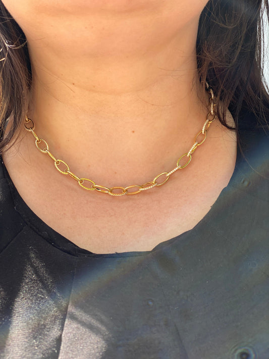 18K Yellow Gold Elongated Cushion Diamond Necklace On Paperclip Chain (2ct)