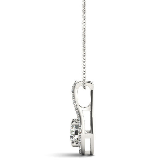 14K White Gold Round Diamond In Cushion Halo Pendant (1.10ctw)