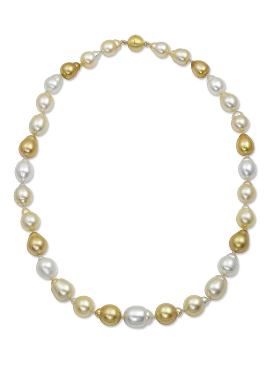 Golden and White South Sea Baroque Pearl Strand With 18K Yellow Gold Clasp (9-12MM)