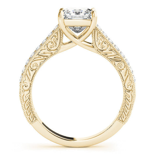 14K Yellow Gold Princess Cut Diamond Filigree Cathedral Style Solitaire (1ct)